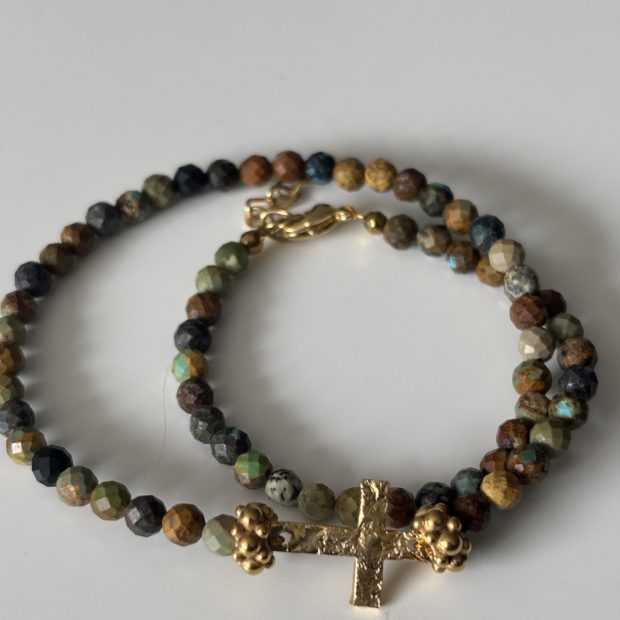 Bracelet double Turquoise avec sa magnifique croix Targaryen dorée à l’or fin