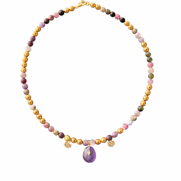 Collier aux perles de tourmaline & pierre d’améthyste – symbole de protection ✨