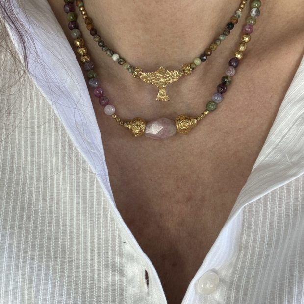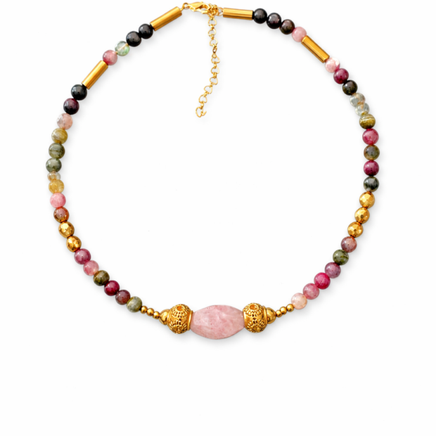 Collier aux perles de tourmaline & Quartz rose – symbole de protection ✨