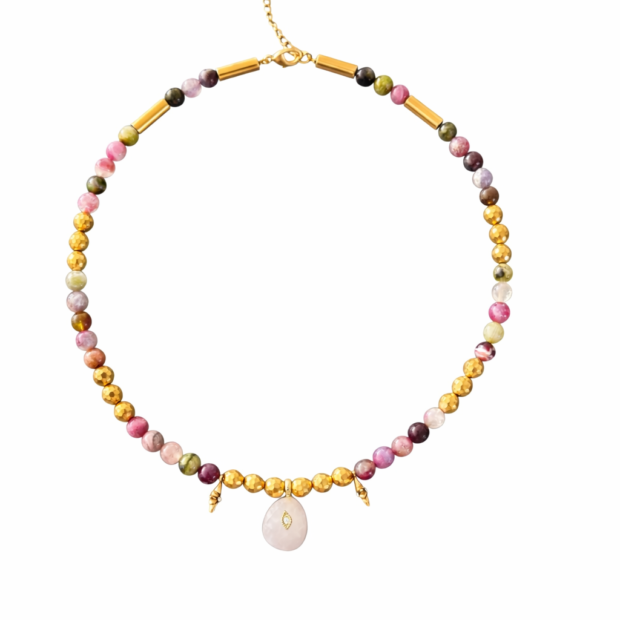 Collier aux perles de tourmaline & Quartz rose – symbole de protection ✨